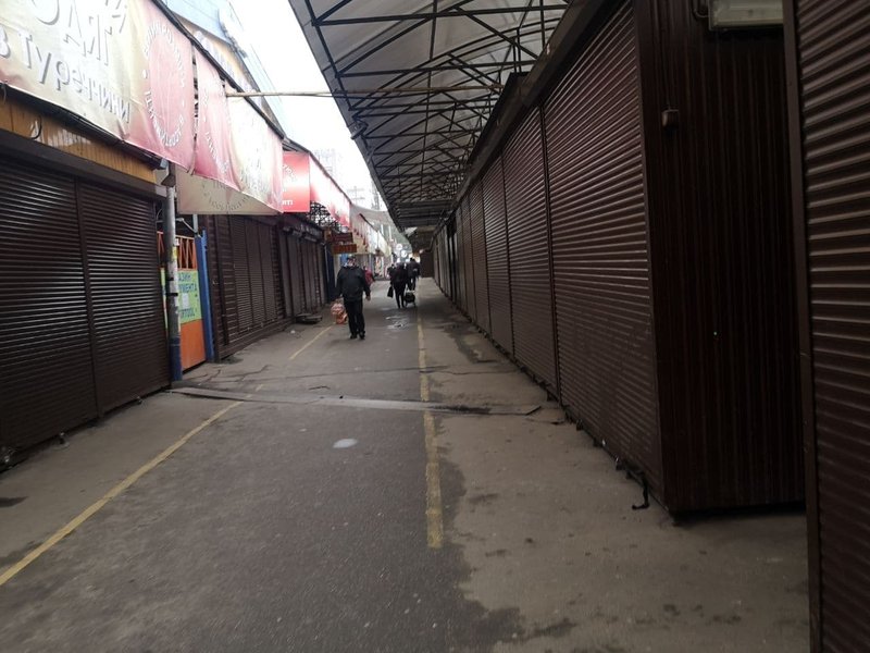А вот расположенный рядом вещевой рынок закрыт полностью. Правда, кто-то все же умудряется торговать из-под прилавка.