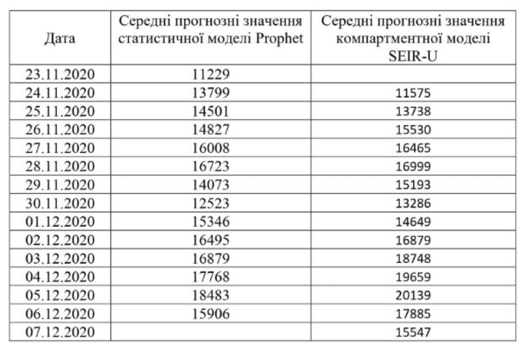 Для установления прогнозов суточного заражения ученые НАН Украины использовали статистическую модель Facebook Prophet и компартментную SEIR-U. Первый алгоритм вычислений учитывает аномальные даты, различные виды сезонности, второй делает акцент на темпах роста новых случаев заболевания.