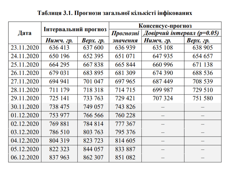 Общее количество инфицированных коронавиурсом в стране 29 ноября будет варьироваться на уровне от 725 141 до 733 763 человек. Через неделю, по состоянию на 6 декабря этот показатель достигнет в лучшем случае 837 963 больных, и 862 307 — при пессимистичном сценарии развития ситуации.