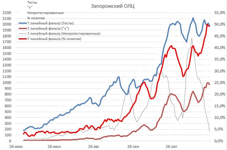 Запорожский ОЛЦ. Позитивность остановилась на 50%.