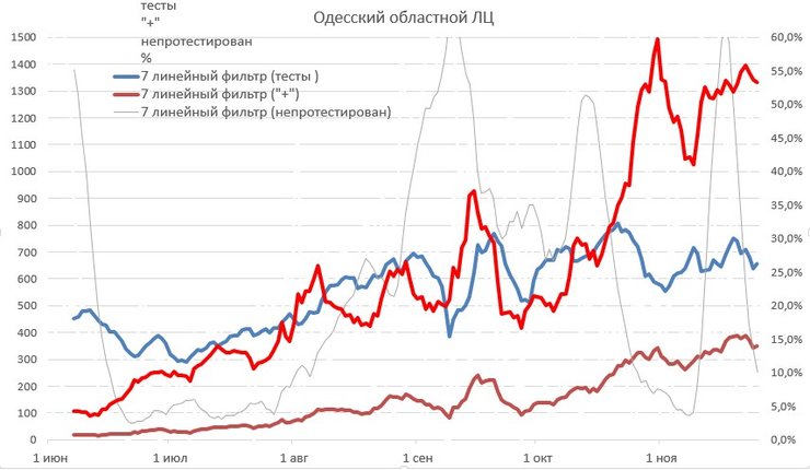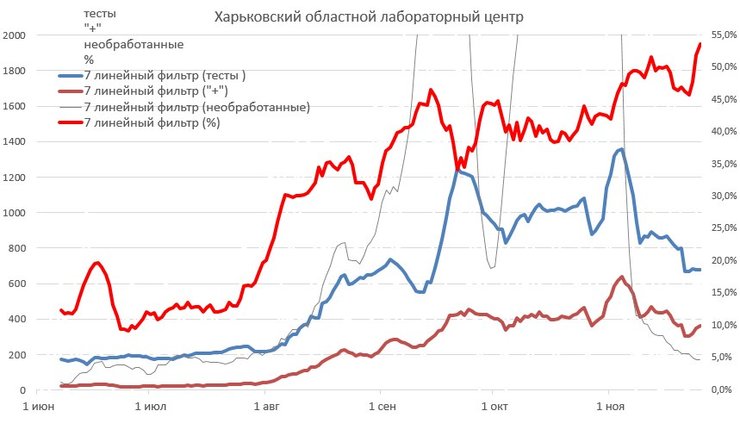 "Черкасский ОЛЦ. А вот тут хочу подробней описать. 4-10 ноября вдруг резко упала позитивность, до 10%, а потом с 13 по 16 ноября она поднялась до 40%, и далее ушла на 60%. Они что там, мочу тестировали если позитивность летала с 10% до 60%? Я не знаю как это все объяснить", – написал Истребин.