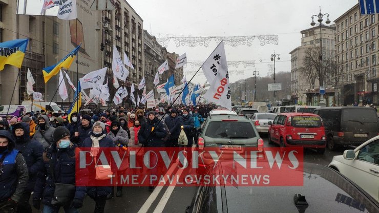 Участники митинга проходят маршем по центральным улицам Киева, пройдут у Офиса президента и закончат марш возле Верховной Рады.