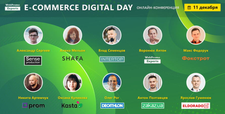 Мы собрали 14 спикеров из ТОП-компаний рынка интернет-торговли. Представители Shafa.ua, Eldorado, Фокстрот, INTERTOP, Kasta, Prom.ua, Decathlon Ukraine, Zakaz.ua и других компаний на реальных примерах — кейсах и личном опыте расскажут, как им удается переживать этот непростой год, с чем они столкнулись уже и что ожидают в 2021 году. Мы увидим глобальное исследование рынка e-commerce с прогнозами на следующий год от основателя академии WebPromoExperts, Антона Воронюка.