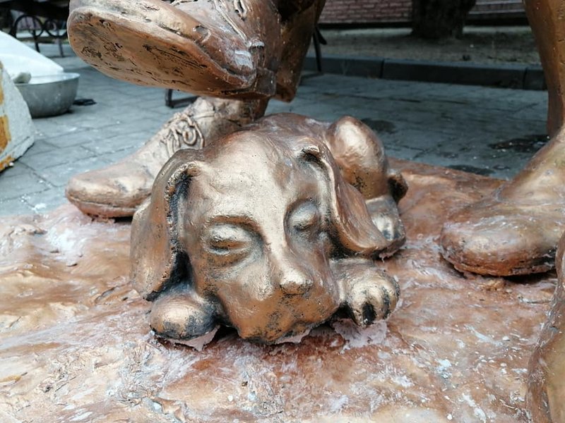 Это уже третий случай вандализма, который был зафиксирован в отношении данного памятника. Первые два раза злоумышленники похищали собачку, которая находилась у ног пожилой пары — небольшого пуделя. А в третий раз повредили скульптуру мужчины — отбили часть ноги.