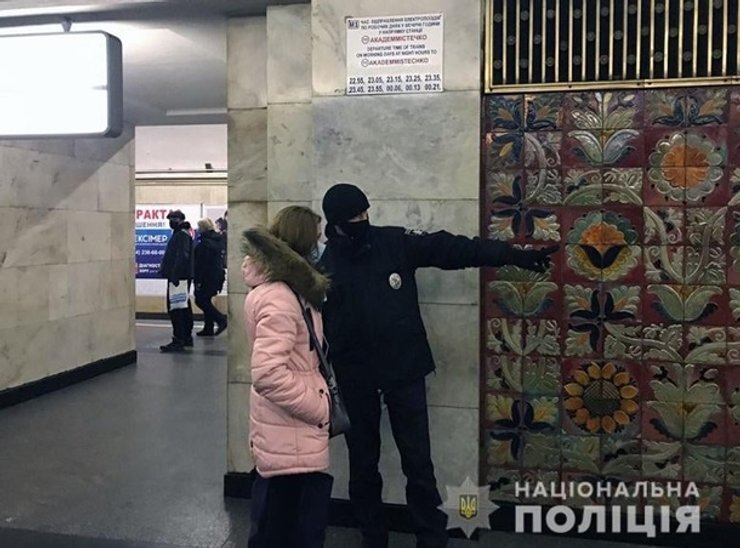 В киевской полиции заявили, что правоохранители также оказывают в метро гражданам помощь, раздавая защитные маски тем, кто их не имеет. Вместе с тем, полиция призывает граждан не нарушать установленные противоэпидемические мероприятия.