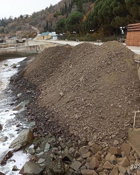 "Малый Маяк. ЮБК. Строительный мусор фактически в море. Такого даже у нас еще не было…", — подписала свой твит пользователь с ником RoksolanaToday&КрымUA.
