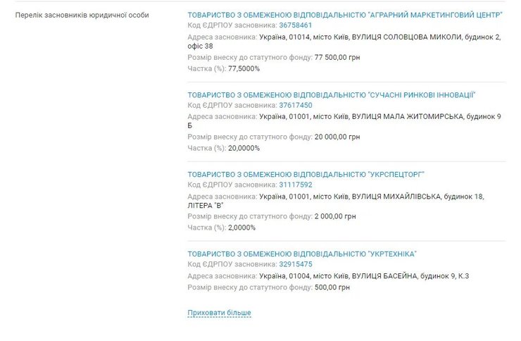 Рынок принадлежит Александру Стельмаху через компанию "Аграрный маркетинговый центр" (77,5% в уставном капитале). Также есть и миноритарные собственники ("Современные рыночные инновации" (связаны с Молчановой), "Урспецторг", "Укртехника").