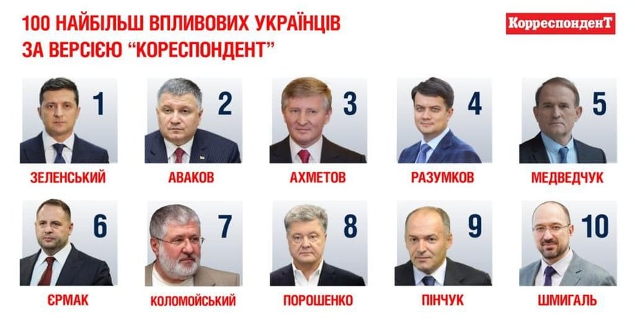 Зеленский, Аваков, Ахметов, Разумков и Медведчук – пятерка рейтинга самых влиятельных людей по версии "Корреспондент"