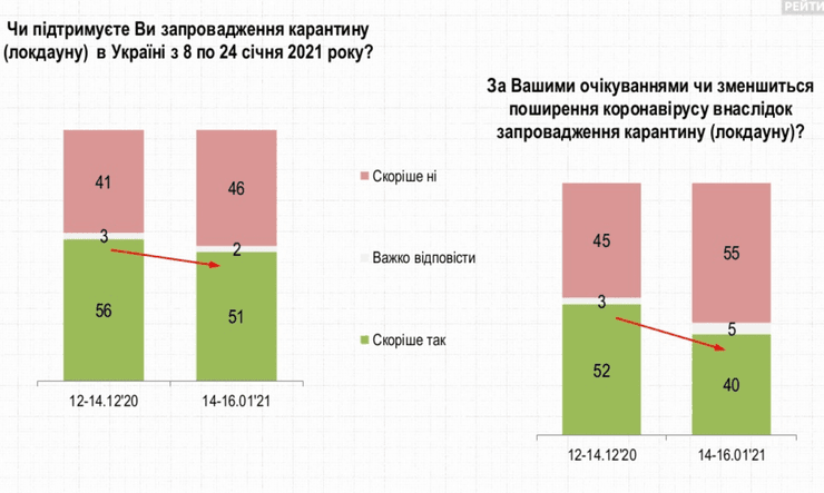Поддерживают введение локдауна с 8 по 24 января 51% людей. В декабре прошлого года таких людей было 56%. При этом уменьшился процент людей, которые считают, что от локдауна замедлится распространение. В декабре таких людей было 52%, а сейчас 40%.