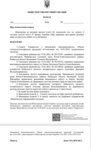 Антирейдерская комиссия при Министерстве юстиции Украины поставила точку в вопросе претензий компании "Спецбуд-Монолит", которую связывают с застройщиками Владой Молчановой и Раймондасом Туменасом к рынку "Столичный". Об этом в интервью "Обозревателю" рассказал заместитель директора рынка "Столичный" по работе с арендаторами Дмитрий Долгушевский. Он подчеркнул, что комиссия пришла к выводу, что инициированное представителями этой компании внесение изменений в реестр права собственности на один из павильонов рынка и последующая "перепродажа" этого объекта – незаконны. В частности, из-за того, что на эту недвижимость в рамках судебного спора между "Спецбуд-Монолитом" и рынком "Столичный" было наложено судебное обременение. И до решения дела по сути с ним запрещено было производить любые действия.