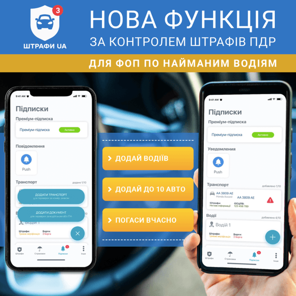 Сделать это можно будет с помощью сервиса "Штрафы UA". Его новая возможность позволяет контролировать до десяти автомобилей и получать уведомления не только по штрафам, которые оформлены на автомобили, но и по штрафам, которые выписали на водителей.
