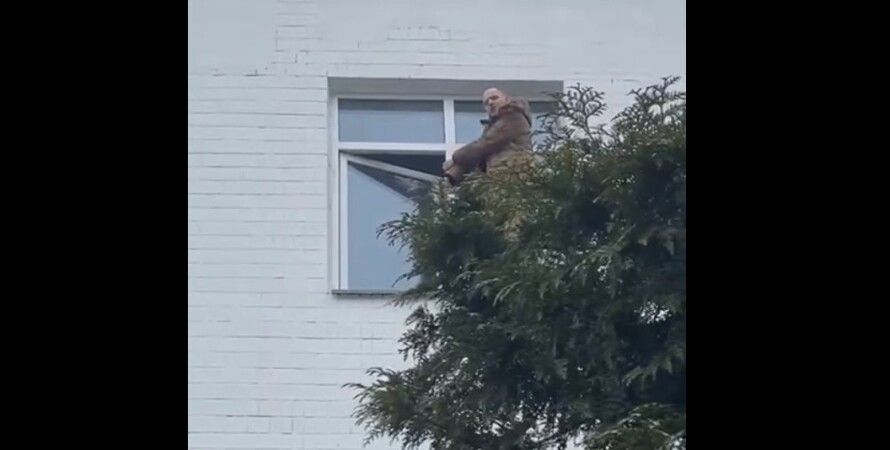 Другой активист, снимавший этот тревожный "перфоманс" объявил за кадром, что в оконном проеме стоит не кто иной, как ветеран АТО Алексей Середюк.