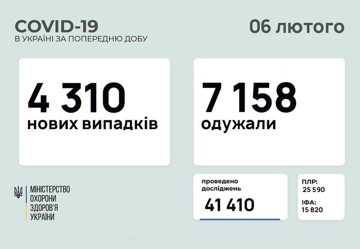 Статистика коронавируса в Украине на 6 февраля: 4 310 новых случаев заражения