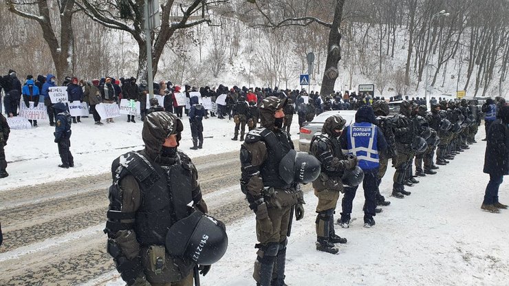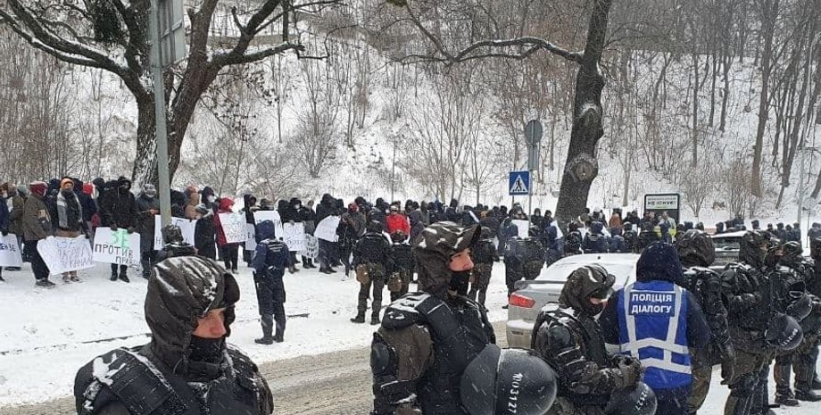 Они выстроились в длинную цепь на Парковой аллее, неподалеку от КВЦ "Парковый", где сегодня должна состояться форум "Украина 30. Коронавирус: вызовы и ответы" при участии президента Зеленского.
