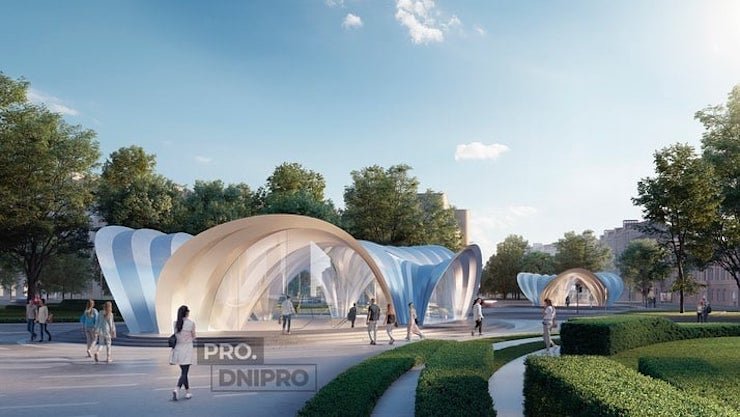 Команда урбанистов показала визуализацию того, как будут выглядеть на поверхности выходы из метро в Днепре. Фотографии они разместили у себя в Инстаграме.