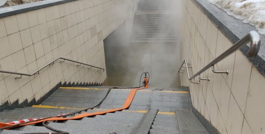 В Киеве на проспекте Победы возле парка Пушкина кипятком затопило подземный переход.