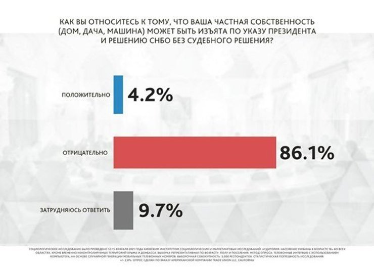 Социологическое исследование проводилось компанией ТОВ "Роботизированные телесистемы" в период с 20 — 23 февраля 2021 года. Всего было опрошено 3 тысячи респондентов. Метод опроса: телефонные интервью с использованием компьютера, на основе случайной генерации мобильных телефонных номеров.