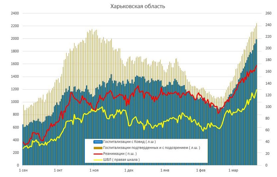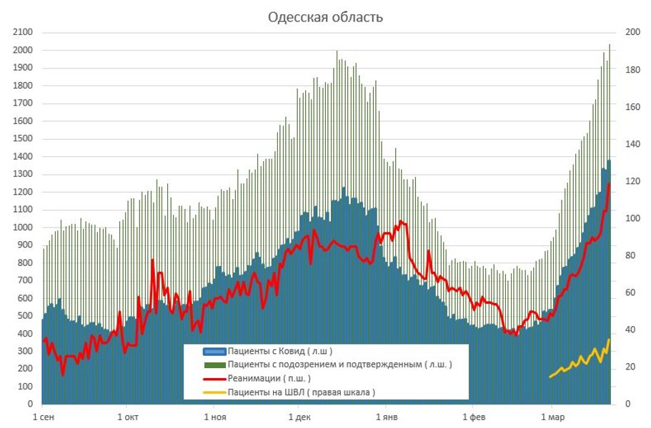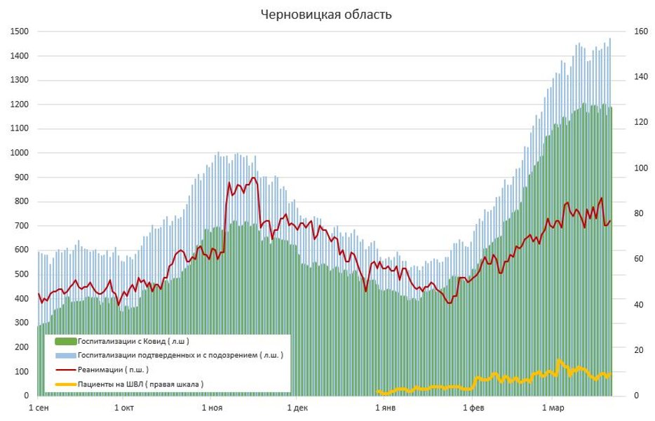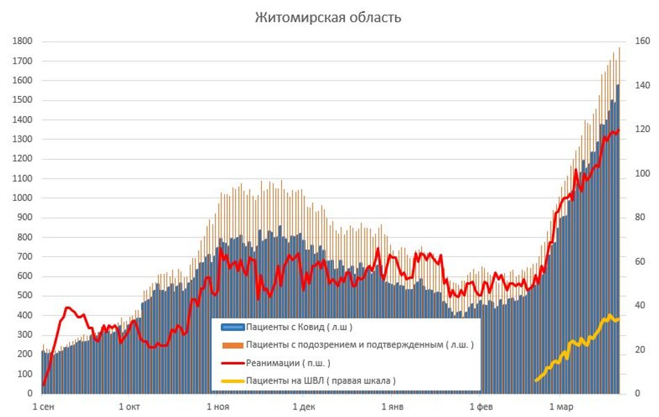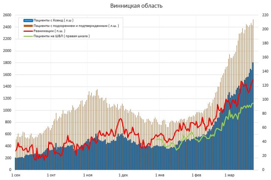 По его словам, в Киеве за 1 день заняли 215 новых мест в больницах, помимо тех что были заняты. Всего занято — 4083. В Житомирской и Черновицкой областях обновлен рекорд госпитализаций.