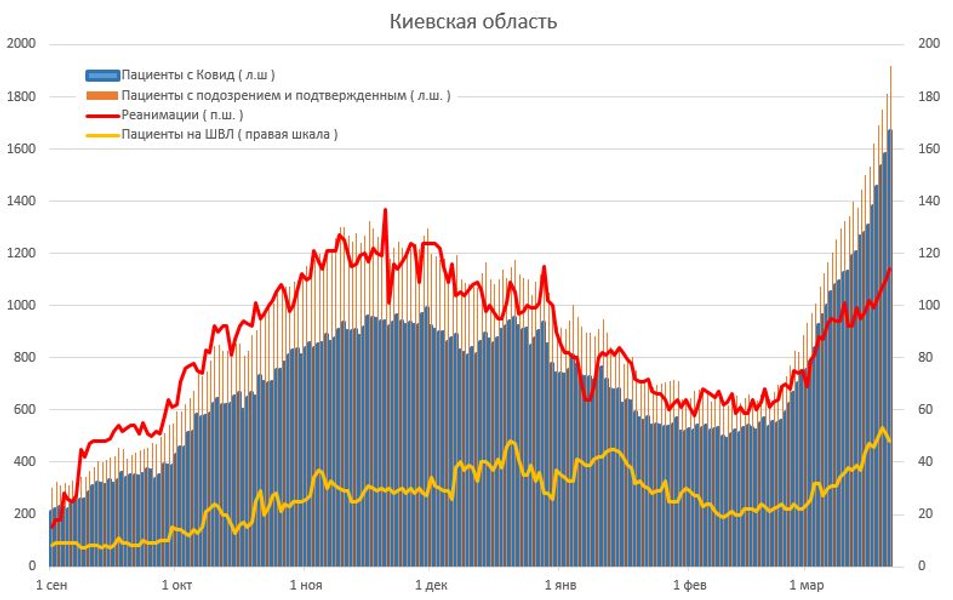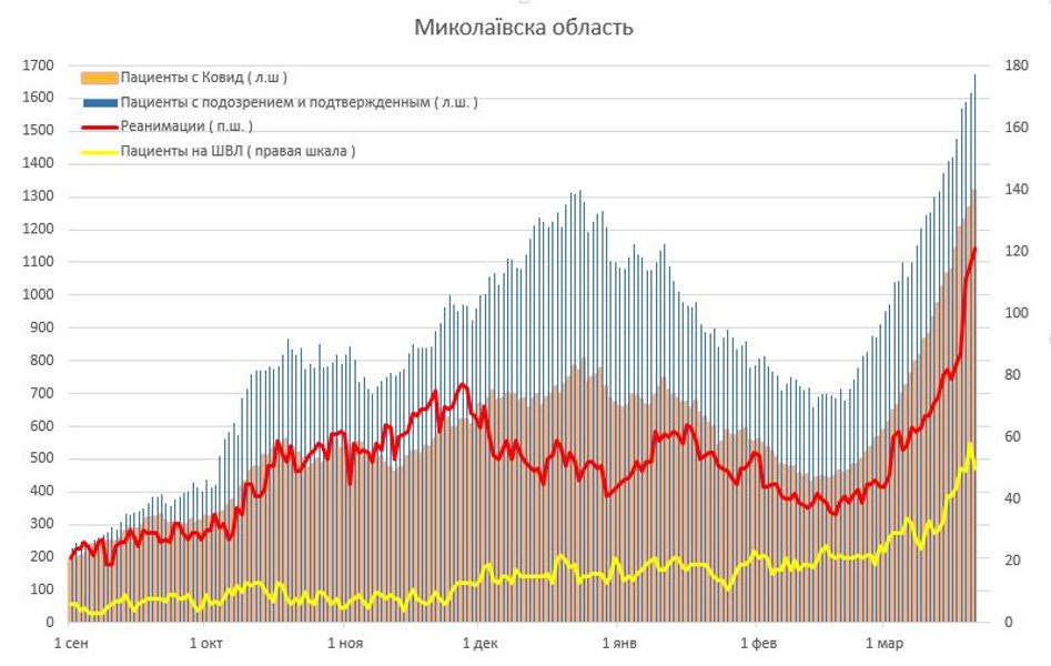 Из-за ухудшения ситуации с коронавирусом с 20 марта Киев закрылся на локдаун, который продлится до 9 апреля. Кроме того, в Киевской области с воскресенья также усилилят карантин из-за распространения коронавирусной инфекции. Власти Николаева также ужесточают карантин в городе из-за ухудшения ситуации с коронавирусом. Ограничения вводятся с 24 марта по 4 апреля.