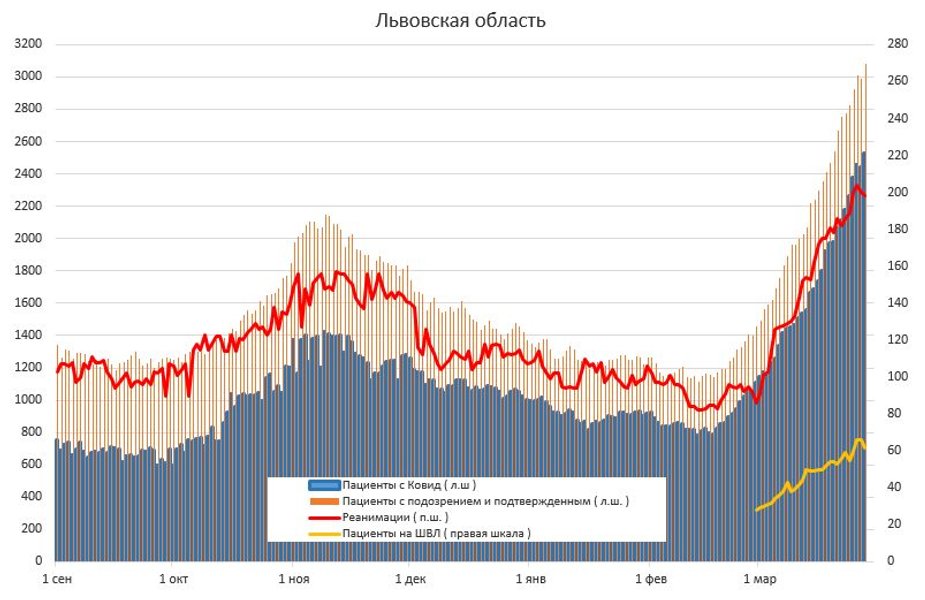 Системный аналитик Евгений Истребин на своей странице в Facebook указал, что за последние 7 дней самые высокие темпы заполнения койко-мест показали город Киев, Киевская, Днепропетровская, Харьковская и Донецкая области. А вот в Винницкой, Ивано-Франковской и Закарпатской областях наблюдается снижение. В Житомирской и Черновицкой областях, который находятся в "красной" зоне карантина, отсутствует положительная динамика.