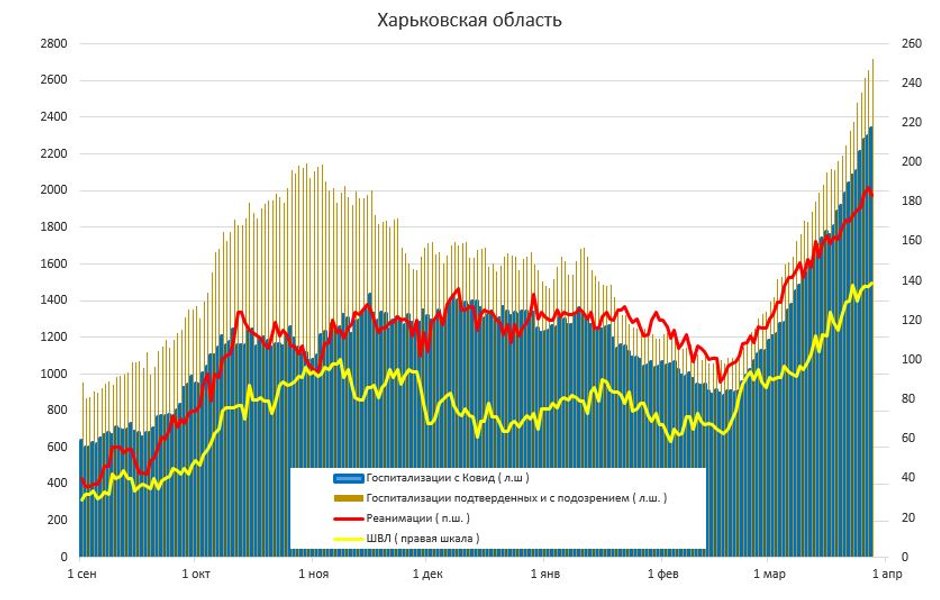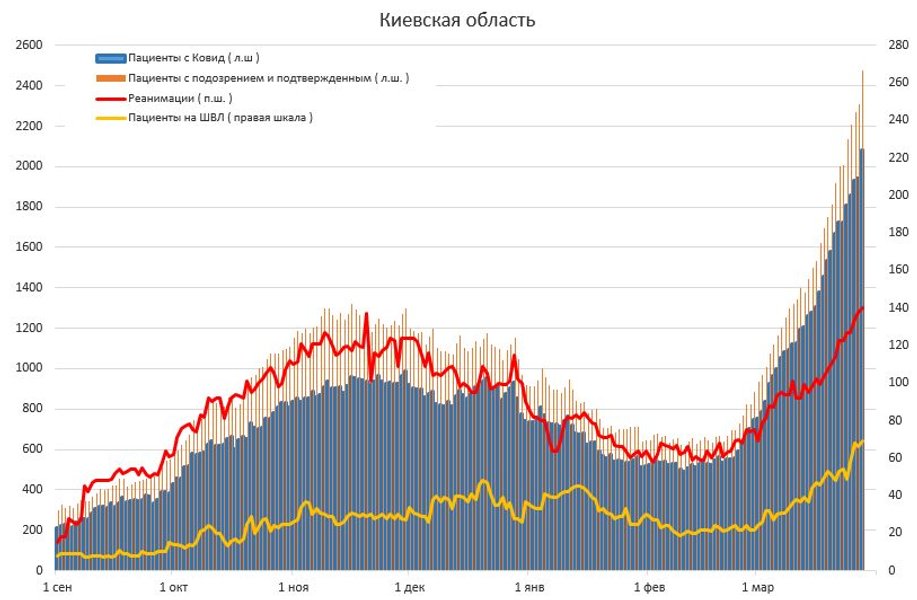 "Наконец-то все больницы Укрзализныци начали подавать данные в Меддату. Это Київська клінічна лікарня на залізничному транспорті №1, №2 и №3. Как оказалось на 170 выделенных мест для больных с Ковидом , всего 21 место с кислородом, из которых 18 — это реанимации. То есть в трех больницах УЗ кислорода НЕТ, кроме реанимаций", — рассказал Истребин о ситуации в Киеве.