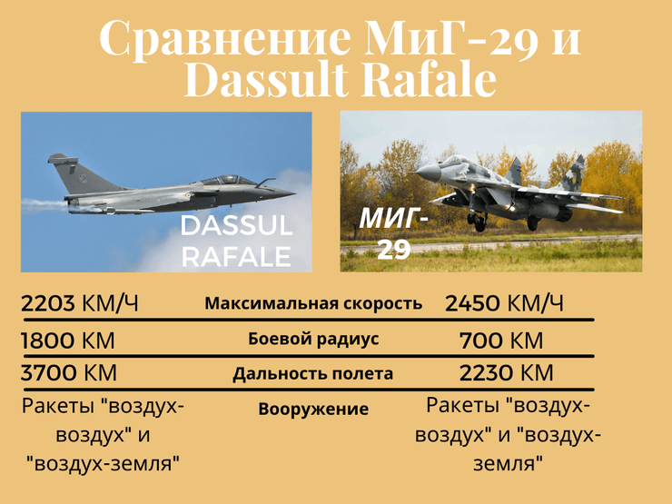 Разница между самолетами состоит еще и в том, что французский Rafale — это многоцелевой самолет, а советский МиГ-29 — истребитель, который способен выполнять меньший спектр задач.