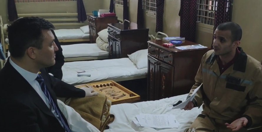 Нардеп Николай Тищенко общается с заключенным в харьковской колонии | Фото: Скриншот