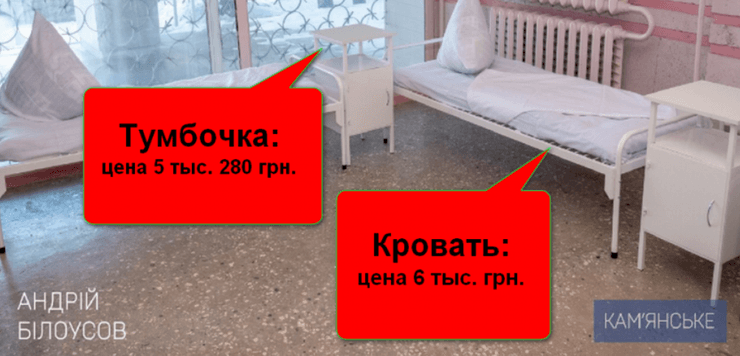 Также в феврале горсовет Каменского закупил у Толкунова 100 кроватей по цене 6 000 гривен за штуку и 100 тумбочек по цене 5 280 гривен за штуку. В открытом доступе, утверждает издание, аналогичные товары можно найти более чем в два раза дешевле.