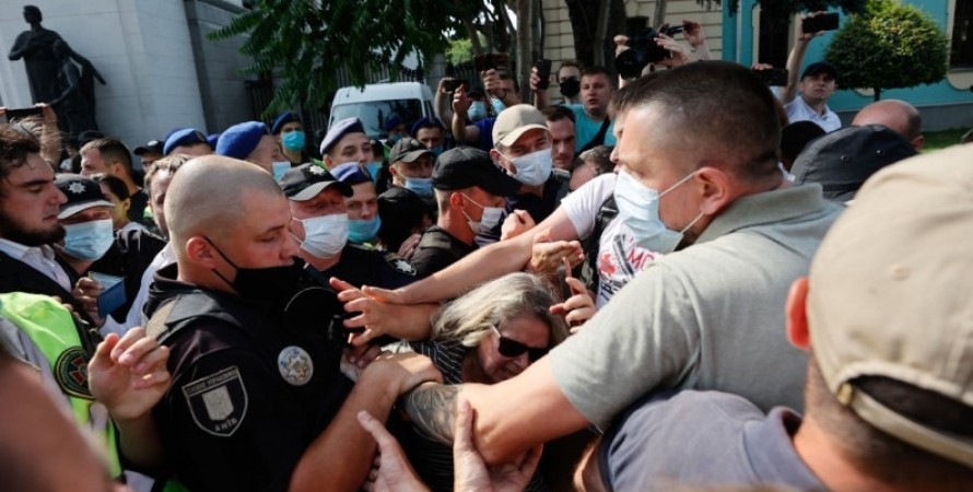 Под Радой дрались с полицией из-за поправок в "языковой закон", отозванных днем ранее (видео)