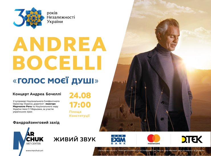 24 серпня відбудеться концерт Андреа Бочеллі до 30-річчя Незалежності України