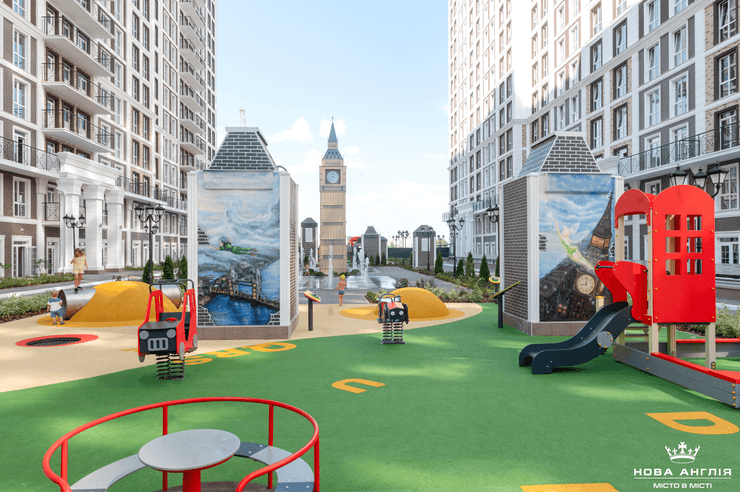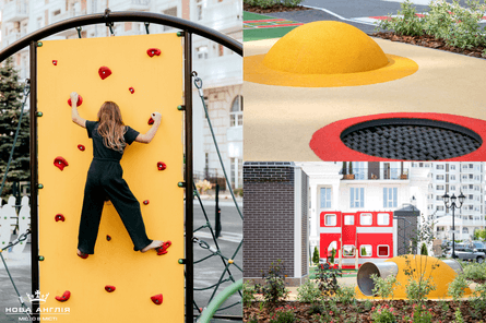 Таким образом ЖК "Новая Англия" выполняет важную социальную функцию для украинского общества. Ведь дети – наше будущее, и каким оно будет зависит от гармоничности их развития. А функционал детских площадок в современных условиях играет одну из важнейших ролей в этом аспекте и, безусловно, требует новых решений