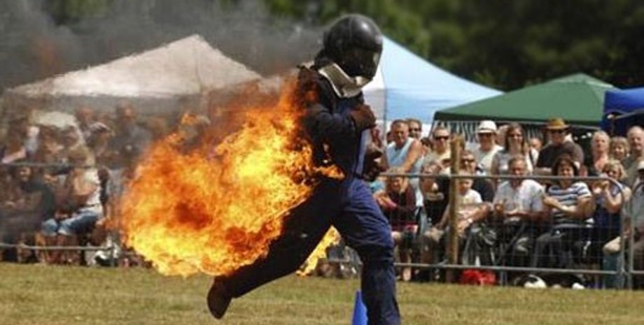 Рекордсмен облил себя бензином, поджег и пробежал почти 80 метров, побив, таким образом предыдущий рекорд, составлявший чуть менее 70 метров.