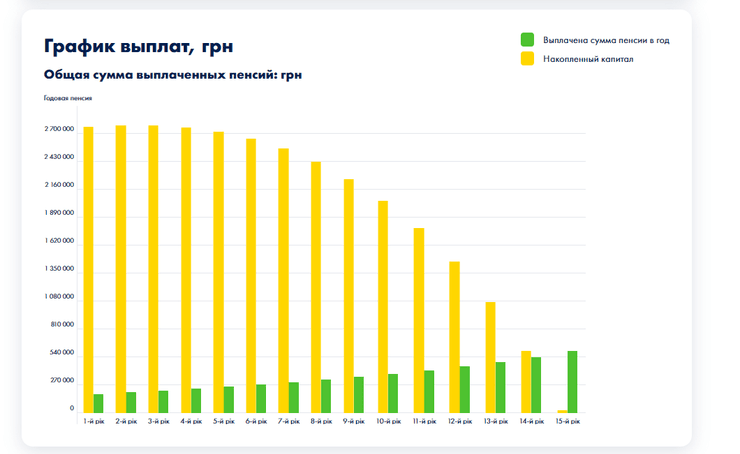 Здесь вы можете просчитать свои выплаты от взносов и желаемой пенсии. На графиках вы увидите план накопления и выплат.