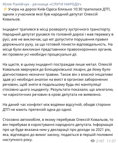 Также Палийчук отметила, что не исключает того, что депутат Ковалев нарушил ПДД.