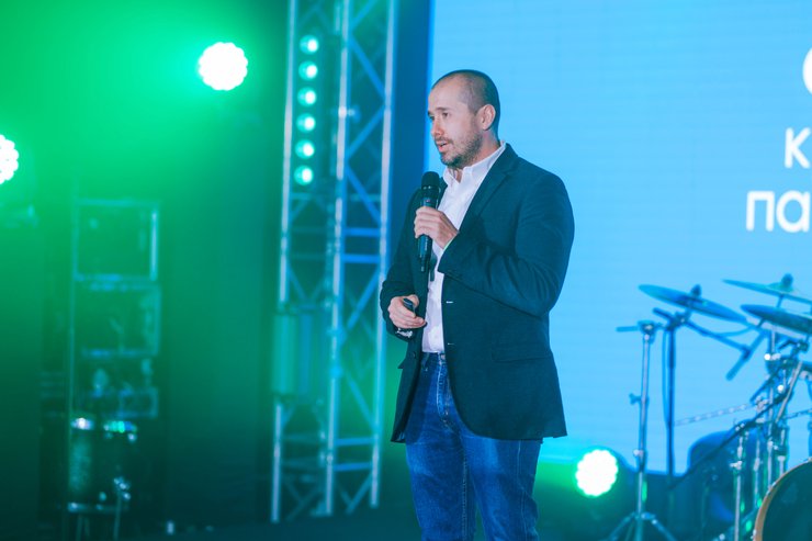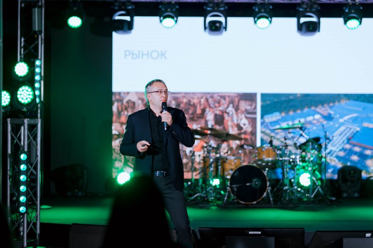 Приветствовал гостей вечера зрелищным видео, представив миссию, ценности и новое позиционирование DIM "Живи больше", основатель и управляющий партнер группы компаний DIM Александр Насиковский: