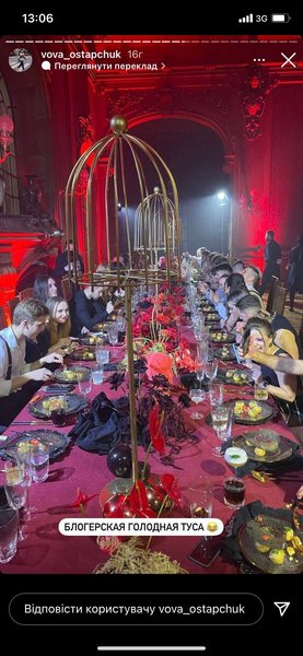 За развлечение гостей отвечал известный украинский телеведущий Владимир Остапчук. В своих сторис он показал праздничный стол, подписав эту фотографию "блогерская голодная туса".