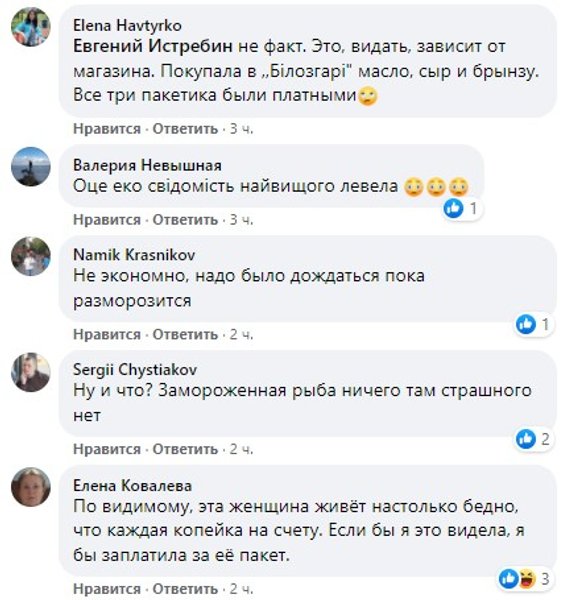 Его публикация собрала сотни комментариев, в которой пользователи по-разному отреагировали на увиденное. В частности, одни указывают на то, что для первичной упаковки мяса или рыбы пакеты бесплатные, а другие заявляют, что это зависит от магазина.