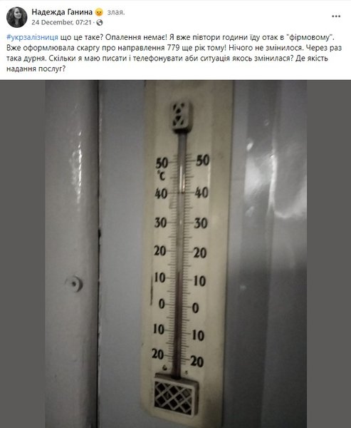 "#укрзализныця, это иней на ваших окнах! Это внутри, Карл) Спасибо что крыша есть, потому что еще задувало бы в голову))", – отметила Надежда.