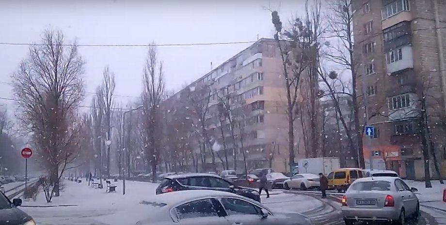 Сильный снегопад обрушился на Киев: дороги сковали пробки (видео)