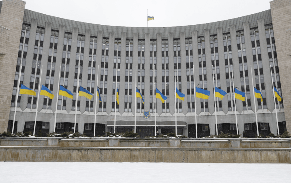 Перед городским советом приспустили флаги Украины. А коммунальным предприятиям, заведениям и организациям рекомендуют тоже приспустить государственные флаги и повесить траурные ленты.