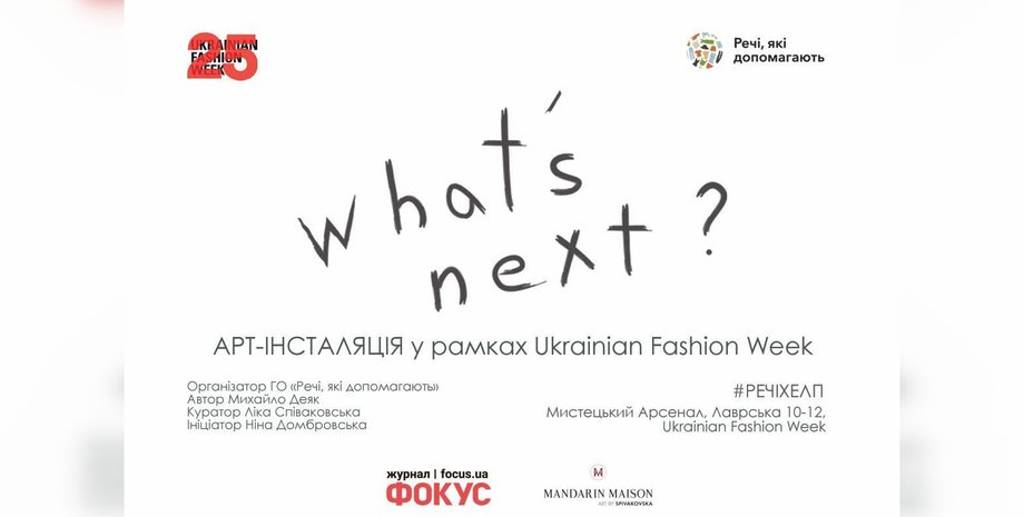 3 лютого у Мистецькому Арсеналі відбудеться арт-перформанс "Що далі?" у межах Ukrainian Fashion Week. Автор інсталяції — Михайло Деяк, український художник із міжнародним визнанням. Михайло — учасник арт-виставок у Базелі та Маямі, посідає 7 місце серед найперспективніших художників України й один із найдорожчих — за версією Forbes. У межах українського тижня мод Деяк створить соціальну інталяцію-перформанс для фонду "РЯД" під кураторством галеристки Ліки Співаковської.