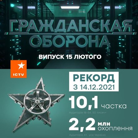 Также побили собственные рекорды и показали высокие цифры программы "Гражданская оборона" с долей 10,1 и охватом 2,1 млн и вечерний выпуск новостей "Факты". Программа получила рекордную долю 14,2 и собрала аудиторию 2,3 млн зрителей. Благодаря этим победам, по итогам телесмотрения ICTV стал лидером дня и традиционно сохранил 1-е место среди всех каналов по коммерческой аудитории 18-54, 50+.