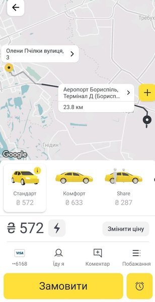 Uklon тоже работает. Но опрошенные Фокусом пользователи сервиса утверждают, что стоимость поездок взлетела в 2-5 раз по сравнению со стандартной. Например, поездка из киевского района Борщаговка на железнодорожный вокзал утром 24 февраля стоила 350 грн. А такси из Киева в Борисполь обошлось в 600 грн, тогда как обычно такая поездка стоила 320 грн. Сложившаяся ситуация объясняется тем, что многие водители не рискнули выйти на линию, тогда как спрос остается высоким.