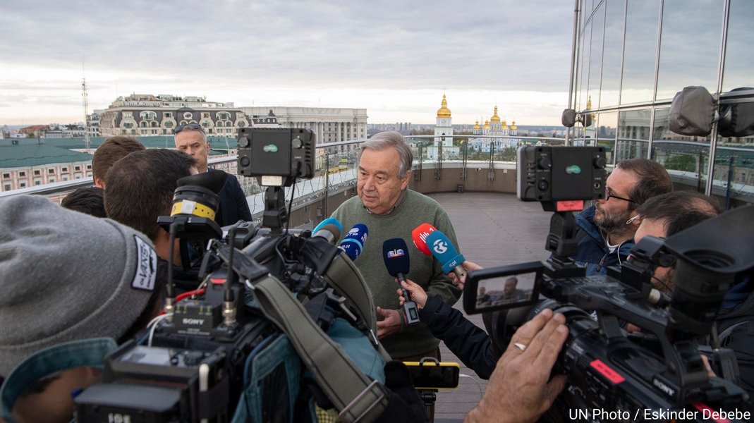 Гутерриш приехал в Украину 27 апреля и успел пообщаться с журналистами в Киеве.
