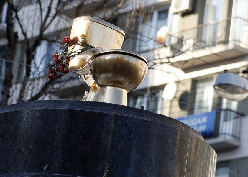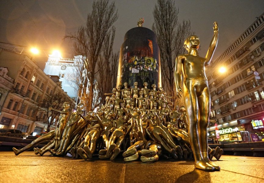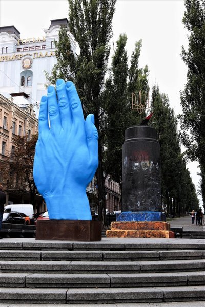 Напомним, рядом с местом, где сейчас находится скульптура "Zaстрелись", ранее стоял памятник Ленину. 8 декабря 2013 года он был повален протестующими Евромайдана при помощи тросов. С тех пор в той локации побывало множество арт-объектов — от золотого унитаза до гигантской синей руки.