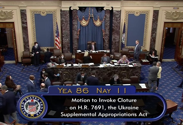 Вечером в четверг, 19 мая, Сенат США большинством голосов поддержал законопроект о предоставлении Украине пакета помощи объемом в 40 миллиардов долларов. Об этом свидетельствует трансляция заседания.