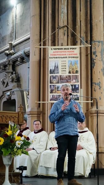 С торжественным словом по случаю возвращения костела под юрисдикцию Ватикана выступил Министр культуры и информационной политики Украины Александр Ткаченко, который уверил всех присутствующих, что отныне в костеле будут звучать молитвы к Богу.