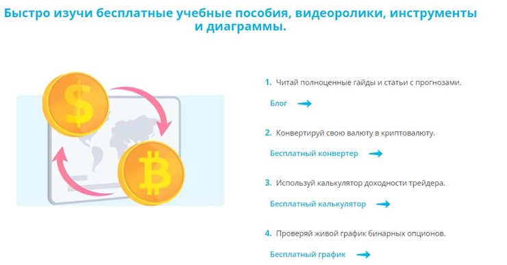 - Полную базу знаний по криптовалюте, Форексу и бинарным опционам.