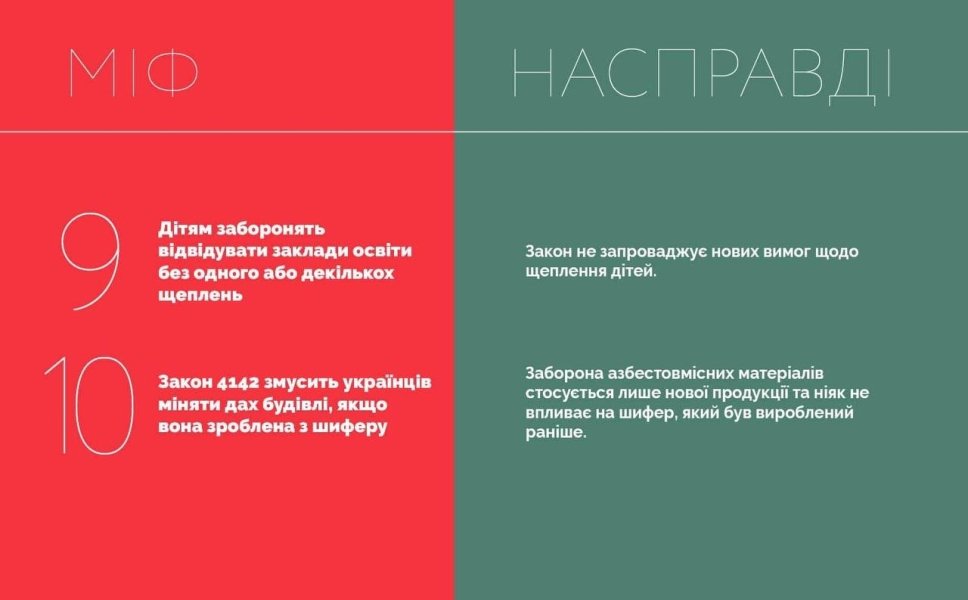 Правда: закон не предусматривает новых требований относительно вакцинации детей.