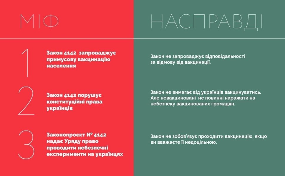 Правда: закон не требует от украинцев обязательной вакцинации, однако они не должны подвергать опасности других людей.